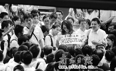 昨日(7月8號(hào))下午2時(shí)許,一身著粉紅色衣服、戴太陽(yáng)鏡、穿黑色網(wǎng)狀絲襪的摩登女郎現(xiàn)身深圳福田區(qū)華強(qiáng)北曼哈購(gòu)物廣場(chǎng)前,脫掉上衣,只留下黑色內(nèi)衣,手舉“徐滇慶再道歉,因賭房?jī)r(jià)教授徐滇慶僅在某報(bào)刊登半版道歉廣告引起部分市民不滿(mǎn),身為徐老粉絲,本人獻(xiàn)玉體做版,為其追補(bǔ)道歉,以求對(duì)其諒解!”的牌子引來(lái)眾多路人圍觀、議論。