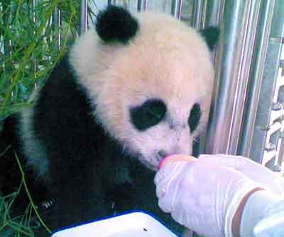 “功夫熊貓”,在省大熊貓搶救中心拒絕人工喂養(yǎng)。工作人員說(shuō),野生大熊貓1歲左右的死亡率為60%多,“功夫熊貓”生命堪憂。