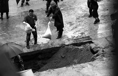 對(duì)工程方迅速用混凝土填埋深坑的做法,他說(shuō),這樣不妥!叭绻巡槊魇鹿试,應(yīng)及時(shí)排除故障,然后再填埋。沒(méi)有查明原因,就封填坑口,會(huì)給以后的工作帶來(lái)不便!薄跻(jiàn)習(xí)記者魏浩文記者洪波圖