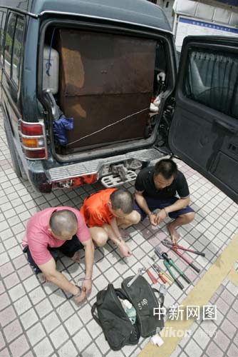 警方現(xiàn)場繳獲吉普車內(nèi)的液壓剪、扳手等作案工具一批。經(jīng)檢查,被盜大貨車的油箱內(nèi)約有70升柴油已被吸入吉普車的油罐。根據(jù)估計(jì),吉普車內(nèi)的油罐容量有1噸左右。