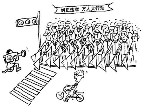 實(shí)際上,交通秩序該誰維護(hù),警察法早有明確界定,交通民警的職責(zé)是“維護(hù)交通安全和交通秩序,處理交通事故”。行人違章影響交通暢通安全,顯然應(yīng)該由交通民警在法律制度框架內(nèi)處理,而不能由萬名機(jī)關(guān)干部越俎代庖。現(xiàn)在,社會(huì)分工越來越精細(xì),機(jī)關(guān)干部也好,交警也好,職責(zé)都是做好分內(nèi)工作。而且,也只有各行各業(yè)人員都堅(jiān)守崗位,盡職盡責(zé),做好本職工作,才能營造和諧融洽的社會(huì)氛圍。萬名機(jī)關(guān)干部上街協(xié)助執(zhí)法,到底是隱射交警無能,管不了行人違章,還是萬名機(jī)關(guān)干部不務(wù)正業(yè)呢?