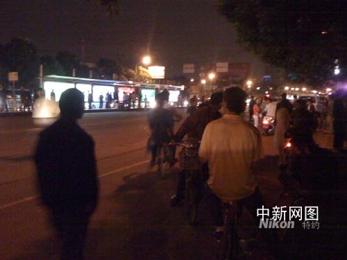 圖為發(fā)生事故的現(xiàn)場(chǎng),事故公交車被快速拖走后,還有數(shù)百名市民在圍觀。王林 攝