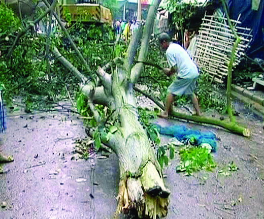 狂風(fēng)突然來襲,給縣城帶來了不小的損失。數(shù)十棟房屋屋頂被掀翻,該縣最大的商業(yè)城屋頂也被掀開了一個大口子;城區(qū)數(shù)以萬計(jì)的大小廣告牌,被突如其來的狂風(fēng)毀壞或卷走;數(shù)百輛?吭诮值琅缘哪ν熊嚤还蔚乖诘;城區(qū)內(nèi)許多綠化樹木,要么被攔腰折斷,要么被連根拔起。