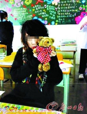 其中,富家女個人的多張照片是這名富家女舉著手機(jī)自拍的。照片中的富家女長頭發(fā),看上去比較年幼可愛。一張她抱著玩具熊的合影則是在教室中拍的,身后還有黑板報。