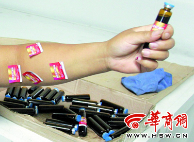 在生產(chǎn)車間一間不足20平方米的房間內(nèi),幾名女工圍坐在一個(gè)白色塑料桶前,周圍擺滿了藥品,有2005年5月14日生產(chǎn)的“小兒退熱口服液”、有效期二年,2005年10月生產(chǎn)的“玉屏風(fēng)口服液”、有效期到2007年9月,2006年5月28日生產(chǎn)的“阿膠益壽口服液”、有效期為18個(gè)月,2005年12月2日生產(chǎn)的“小兒咳喘靈口服液”、有效期到2007年11月等,這些被拆了外包裝的口服液被分別放在大紙箱中。