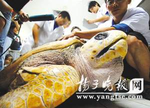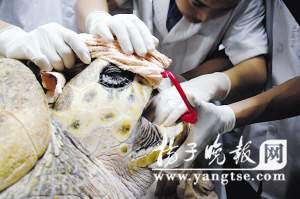 南京海底世界300歲的老壽星——蠵龜(xīguī),由于舌部長出惡性腫瘤導(dǎo)致進(jìn)食和呼吸極端困難。海底世界的幾位外籍專家經(jīng)過會(huì)診后,決定手術(shù)切除這個(gè)腫瘤。