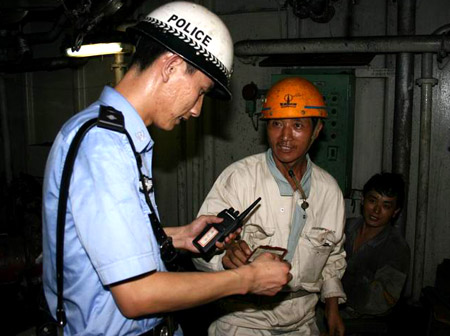 為進一步鍛煉、檢驗應(yīng)急反應(yīng)和協(xié)同作戰(zhàn)能力,消除對外開放口岸安全隱患,8月9日、10日兩天,(上海)金山邊檢站與市局水上公安局在龍吳路沿江部分對外開放碼頭舉行了代號為“江盾”的聯(lián)合演練,通過實戰(zhàn)提高雙方應(yīng)對口岸突發(fā)事件的能力,為奧運盛會的平安舉行保駕護航。演練階段,由雙方分別對碼頭安保工作、登輪管理工作及外輪自管工作展開專項檢查,并向外輪船員、碼頭工作人員宣傳雙方在奧運會舉行期間將采取的服務(wù)、管理舉措。值得一提的是,演練過程中,多艘駁船企圖趁夜色非法搭靠外輪從事不法交易,在雙方的密切配合下,成功制止了其不法行為。(新華網(wǎng)上海頻道 記者陳飛 通訊員唐杰攝影報道)