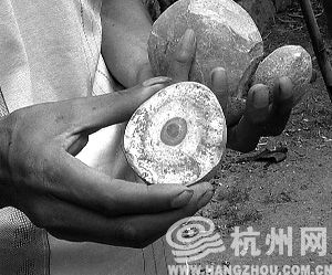 徐土根說,這是他在遂昌金礦做農(nóng)民工的時候發(fā)現(xiàn)的,一直放在家里。具體地點是在云峰鎮(zhèn)和濂竹鄉(xiāng)交界處的一座山上,“當時只覺得挺好看的,這五六個像蛋一樣的石頭,小的只有普通雞蛋那么大,最大的也就和鉛球一樣,重量從幾兩到幾斤不等。”
