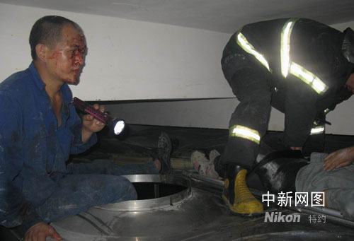 此時(shí),劉華景發(fā)現(xiàn)帶來的照明燈也因?yàn)楸ㄊチ斯δ,周圍一片漆黑。妻子受傷在一旁無法起身,丈夫?yàn)榫绕拮,一邊關(guān)掉了昏前使用的氧氣瓶,一邊拖著傷重的身體摸索著下水箱的梯子(現(xiàn)場(chǎng)一片漆黑,當(dāng)時(shí)的梯子只搭在水箱上面,高度兩米五左右,劉華景眼睛受傷,只能摸索),費(fèi)勁體力,終于找到了樓上值班的員工,并帶到了事故地點(diǎn)營(yíng)救妻子。但事情卻沒有那么簡(jiǎn)單,妻子的腰部受傷嚴(yán)重,如果輕易抬動(dòng),可能導(dǎo)致整個(gè)人永久癱瘓,所以員工不敢輕易救援,只能撥打了“120”和“119”救助。