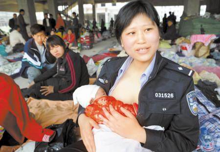 記者:地震時,你的孩子才6個月,當(dāng)時被迫中斷了喂奶,有沒有覺得對不起孩子?