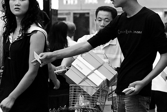 龍翔橋因?yàn)槿肆鬏^多,除了發(fā)小廣告的,還有推銷產(chǎn)品及攝影寫真廣告的。這里目標(biāo)更明確,只針對(duì)女性,每次都是三四個(gè)人一起纏上去。