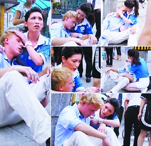 8月11日,一位網(wǎng)友在某論壇里發(fā)了個名為《我拍到最美的奧運志愿者美眉》的帖子,并附有多張現(xiàn)場照片。發(fā)帖人描述說:當時一金發(fā)碧眼的老外走得挺慢,我沒怎么注意。一回頭那老外坐地下了,耷拉著個腦袋。旁人圍了過來,議論說可能是中暑了,這會兒過來一漂亮美眉,還是個奧運志愿者,又是摸頭又是詢問的。老外當時瞳孔放大,很嚇人的樣子!美眉看樣子也有點發(fā)懵,不過很快就指揮大伙打電話什么的……周圍還有人拿出風油精,附近飯館經(jīng)理服務(wù)員全來了,還幫忙倒水。那志愿者美眉,我估計還有點兒經(jīng)驗,又掐人中又揉太陽穴地折騰半天,可把她急壞了……隨后志愿者美眉用英文問清老外的住址后要送老外回去,估計怕老外走半道再犯了啥的,旁邊大家都夸她,人家還挺低調(diào)扶著老外就走了。