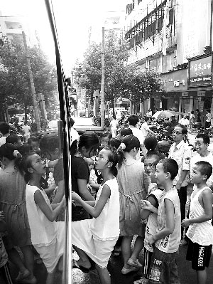 8月2日,大量學(xué)生擠坐免費(fèi)公交,有一些學(xué)生還來(lái)回坐了好幾趟。