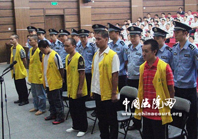九江中院院長陳堅親自擔(dān)任該案審判長,并當(dāng)庭宣讀了判決書,一審以故意殺人罪、搶劫罪、盜竊罪,數(shù)罪并罰,判處被告人吳曉劍死刑,剝奪政治權(quán)利終身;以故意殺人罪、盜竊罪,數(shù)罪并罰,判處被告人任忠杰死刑,剝奪政治權(quán)利終身;以故意殺人罪、搶劫罪、盜竊罪,數(shù)罪并罰,分別判處被告人楊曉大、吳曉安、王曉海有期徒刑十七年、 十四年和十三年;以搶劫罪和盜竊罪數(shù)罪并罰,判處被告人劉曉剛有期徒刑七年。同時,判決被告人吳曉劍、任忠杰、王曉海、楊曉大、吳曉安共同賠償附帶民事訴訟原告人許俊谷景的母親、妻子及女兒許可的經(jīng)濟損失共計人民幣284410.22元。