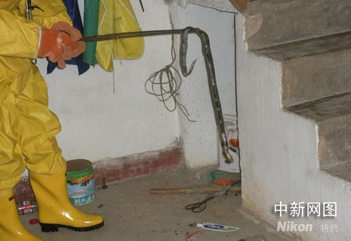 當消防戰(zhàn)士們趕到位于北岙鎮(zhèn)城西路332弄26號許女士家中時,戰(zhàn)士們就發(fā)現(xiàn)了蛇的蹤影,這條蛇在廚房樓梯間的角落里盤作一團,拇指粗的身體,蛇頭不時吐出血紅的信子。