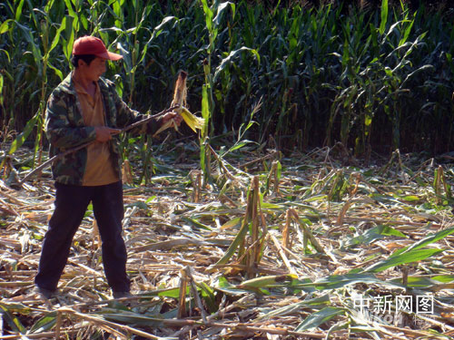 在吉林省樺甸市橫道河子鄉(xiāng)荒山村臥龍屯,野豬經(jīng)常會(huì)突然闖進(jìn)農(nóng)民的玉米地,啃食玉米!把劭从衩壮墒炝,卻被野豬成片成片地毀壞!贝迕裱ν赫f,他家的玉米地就被野豬毀了,啃食的玉米棒散落一地。