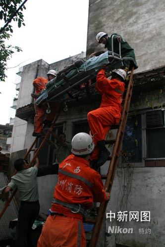14時(shí)20分,欽州市消防支隊(duì)接到報(bào)警稱,前進(jìn)路武警招待所旁有一人跳樓被卡。支隊(duì)接到求助電話以后迅速調(diào)集特勤大隊(duì)兩臺(tái)消防車前往救援。隨后,消防官兵利用掛鉤梯迅速上到一平頂房樓頂,發(fā)現(xiàn)一名男子躺在兩堵墻之間,一條腿卡在墻縫里,并有凝固的血跡。該男子雙眼緊閉,表情痛苦。消防官兵一邊救援一邊與其說(shuō)話,試圖減輕被困男子的痛苦,但任憑消防官兵怎么說(shuō)話,該男子始終沉默。消防官兵迅速將其從墻縫里抬了出來(lái),并用接力的方式將其抬下了地面。