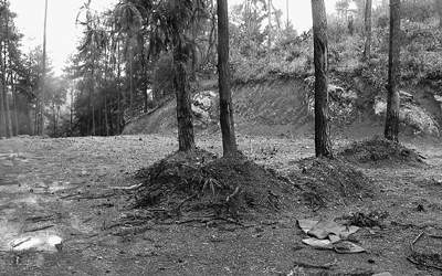 福海生態(tài)園建設(shè)需遷一片墳?zāi)梗凑铡顿F州省殯葬管理?xiàng)l例》,林區(qū)內(nèi)選址遷移墳?zāi)梗坏谜加昧值亍⒏,而貴州省林科院、福海公司不管相關(guān)部門的處理意見,未辦理占用林地手續(xù),由福海公司出錢出人,將部分樹木園內(nèi)墳?zāi)惯w往林科院瞭望臺(tái)附近林區(qū)內(nèi),經(jīng)司法鑒定,墓地地面大部分被水泥硬化,灌木及地被全遭毀壞,非法占用用材林地7.79畝。