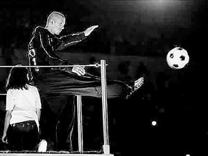 這只黑白相間的足球以一個漂亮的“貝氏弧線”飛向遠處,現(xiàn)場一名年輕的志愿者飛身上前,穩(wěn)穩(wěn)地把足球攬入懷中。懷抱足球,他那燦爛的笑容感染了現(xiàn)場和電視機前的億萬觀眾,人們情不自禁地為這位快樂的陽光男孩、為偉大的奧林匹克精神歡呼。