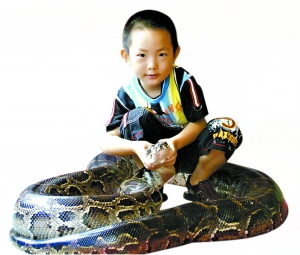 據(jù)秉哲的父親李先生介紹,他在湖北老家辦了一個小動物園,養(yǎng)了不少動物。秉哲出生后,也非常喜歡小動物,尤其是對園內(nèi)的一條蟒蛇一見鐘情。秉哲9個月大的時候,那條蟒蛇也不過20公斤左右,那時候秉哲就敢趴在蟒蛇的身上玩耍、抱著蟒蛇一起睡覺,膽子大得不得了。蟒蛇也喜歡秉哲,從來就沒有傷害過他。