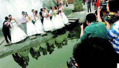 記者在現(xiàn)場看到,合江亭的眾多新人,搞錯(cuò)對象的畢竟還是少數(shù),但不小心踩了別人的婚紗,親戚跟錯(cuò)了隊(duì)伍之類的事情倒是經(jīng)常容易見到!叭绻麚Q種心情,倒是為喜慶添點(diǎn)氛圍吧!睂Υ,王海安慰自己。