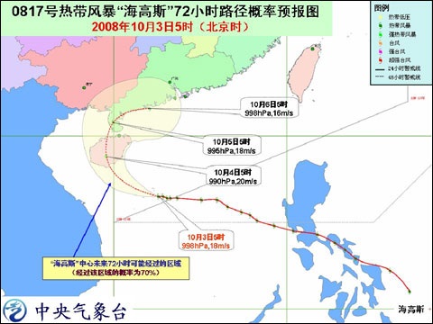 中央氣象臺2008年10月3日6時發(fā)布臺風(fēng)消息: