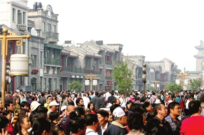 昨天,記者從崇文警方獲悉,十一黃金周前4天,前門大街接待觀光游客總數(shù)達(dá)99萬。前四天每天客流量均為綠色等級(同一時間在街內(nèi)游覽的游客在1萬人以下),警方未對游客采取限流措施。