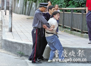 昨天清晨,一男子潛入南岸區(qū)南坪麗華酒店5樓洗腳城盜得一部手機(jī)后,被酒店保安江海濤追上。小偷掏出幾張百元大鈔哀求江海濤放行,被拒后翻臉抽出刀子威脅。江海濤徒手與毛賊展開搏斗,在趕來的同事的幫助下,將毛賊制服并扭送派出所(如圖)。