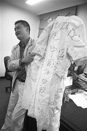 此外,川大華西醫(yī)院還將近百件抗震救災醫(yī)療隊的服裝等進行了捐贈,其中包括來自黑龍江、江西、北京等20多個省市。廖志林表示,地震后有30多個醫(yī)療隊進駐華西醫(yī)院醫(yī)治傷員,這次從全國各地郵寄而來的醫(yī)療服,是通過書信號召他們捐贈出來的,希望建川博物館能全面展現(xiàn)抗震救災過程中各方面眾志成城的場景,目前已收集完成了20多個醫(yī)療隊的相關物品。“一件文物一個故事,我們在做地震博物館的時候更注重收藏感動人心的背后故事!焙涡掠卤硎,薛梟的故事讓無數(shù)的中國人記住了他,博物館收藏其簽名的可樂罐主要是希望為參觀者呈現(xiàn)一個不可磨滅的記憶,就像給妻子最后尊嚴的摩托車、為搭板房勞累而犧牲的武文斌的雕像一樣。博物館一直想尋找的是那些飽含故事的實物,“電視上不是說,有位媽媽為保護自己的孩子不幸遇難,她在手機上留下了‘親愛的寶貝,如果你還活著,請記住媽媽愛你’的短信,但苦苦尋覓這部手機,都沒有結(jié)果。讓我們非常遺憾!