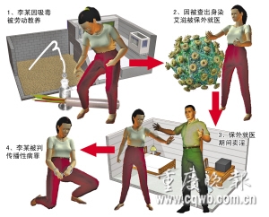 據(jù)永川區(qū)法院介紹,該區(qū)下崗中年婦女李某原是一名吸毒女子,因吸毒被勞動教養(yǎng)。進(jìn)勞教所時(shí),抽血化驗(yàn)查出李的血液中攜帶艾滋病毒。勞教場所為此對李采取了保外就醫(yī)措施。