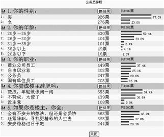 天涯社區(qū)就公務(wù)員辭職一事,做了一個(gè)小調(diào)查。