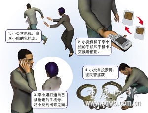 原來(lái),李小姐被搶后發(fā)現(xiàn)還能撥通自己的手機(jī),就每天撥打。小炎經(jīng)常換卡,那天恰好換成了搶來(lái)的卡,還誤以為是自己的手機(jī)卡。接通電話(huà)后,他以為真是自己的朋友,就和李小姐約好了見(jiàn)面的地方。李小姐當(dāng)即報(bào)警。