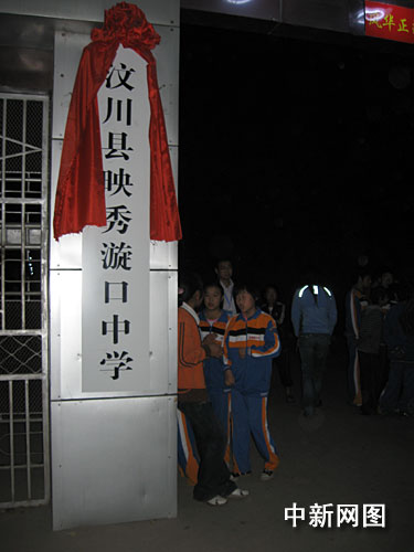 來(lái)到學(xué)校天已擦黑,校門口掛著“汶川縣映秀璇口中學(xué)”的牌子,汶川——這個(gè)屬于四川的地名,這個(gè)因?yàn)槟菆?chǎng)巨大災(zāi)難而舉世周知的地名,出現(xiàn)在這里,無(wú)疑有著特殊的意味。而那塊經(jīng)歷過(guò)覆頂之災(zāi)的校牌,則以嶄新的面貌出現(xiàn)在這里——掛在上的紅綢依然還很鮮艷。同學(xué)們穿著校服,見(jiàn)到前來(lái)的記者們,好奇地簇?fù)碇^看!案绺缃憬愫谩,孩子們很有禮貌地打著招呼,青春的校園在不上課的時(shí)候永遠(yuǎn)是喧嚷熱鬧的。