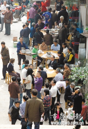 昨日中午,涪陵區(qū)珍溪鎮(zhèn)的凱云賓館成了全鎮(zhèn)最鬧熱的地方,大量賓客趕來(lái)等待吃流水宴席,因人數(shù)太多,有人等了三輪仍沒(méi)入席。此前,本報(bào)接到多位涪陵區(qū)新妙鎮(zhèn)老板電話(huà):“鎮(zhèn)長(zhǎng)秦學(xué)在珍溪老家辦席幾百桌為父親祝壽,邀請(qǐng)我們赴宴。兩地相距30多公里,我們不想去,又不好拒絕。”