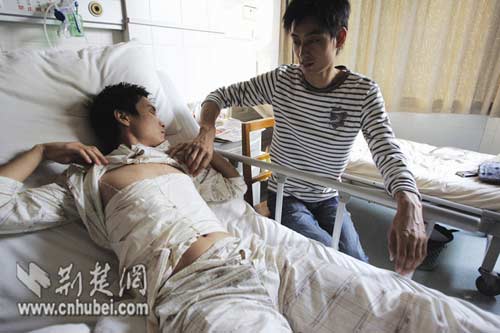 據(jù)了解,23歲的小徐是仙桃市陳場鎮(zhèn)人,父母在家務(wù)農(nóng)。今年6月,他攻讀完武漢大學(xué)動力與機(jī)械學(xué)院的碩士,還欠1萬多元的助學(xué)貸款。受傷后,他所在的單位省特種設(shè)備檢驗(yàn)所,及時給他借支了2萬元的醫(yī)藥費(fèi)。