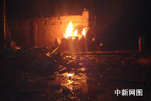 據(jù)一位現(xiàn)場救援的消防人員介紹,爆炸現(xiàn)場濃煙四起,一團團火苗從液化氣罐中噴出六七米高,發(fā)出“吱-吱”的聲響,廠區(qū)內(nèi)不時發(fā)生爆炸,鋼結(jié)構(gòu)車間受損嚴(yán)重,頂部及東北角墻體被爆開,據(jù)現(xiàn)場了解,里面已有10多枚液化氣罐發(fā)生了爆炸。而廠區(qū)東側(cè)為居民住房,距車間約5米,廠區(qū)西側(cè)為阿克蘇王三油漆化工廠,南側(cè)為空地,堆放成品發(fā)泡網(wǎng),北側(cè)為該單位庫房,堆放大量成品發(fā)泡網(wǎng),油漆車間與發(fā)泡網(wǎng)廠車間相連,里面放著價值約30余萬元的涂料和設(shè)備,火勢力借著風(fēng)力逐漸向四周蔓延,如不及時撲救,很可能發(fā)生火燒連營的危險,造成更大的經(jīng)濟損失。