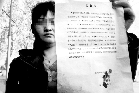 豪豪的姑姑拿著按有三方指印的協(xié)議書。