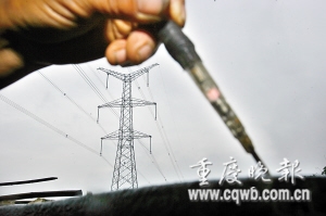 據(jù)了解,楊家房頂?shù)母邏壕(xiàn)是連接川渝電網(wǎng)的洪(溝)板(橋)線(xiàn),電壓高達(dá)50萬(wàn)伏。楊道勇說(shuō),電塔施工前,有關(guān)部門(mén)曾到他家丈量過(guò)房屋面積,說(shuō)是要搬遷,施工時(shí)卻沒(méi)了下文。電塔施工時(shí)他曾“耍橫”扣住高壓線(xiàn)不準(zhǔn)安裝,卻被施工方負(fù)責(zé)人哄回家,偷偷將線(xiàn)安好。