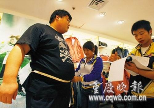 “別人的目光及肥胖帶來(lái)的不便,我已經(jīng)習(xí)慣,就是衣服問(wèn)題成了我最頭疼的事!蓖踅苡魫灥卣f(shuō),他以前的衣服是在老家找裁縫定做的,來(lái)渝只帶了三套單衣褲,這幾天氣溫驟降,他連續(xù)跑了5天,足跡遍及主城各大商圈,但仍未買(mǎi)到一件合適衣服。而以前的秋冬,他都是將買(mǎi)來(lái)的特大號(hào)秋衣秋褲剪破穿在里面,“可現(xiàn)在我要幫老板跑業(yè)務(wù),衣著太破爛不行!