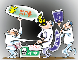 假記者之所以大行其道,屢屢敲詐成功,甚至能堂而皇之地領(lǐng)取“封口費(fèi)”,是因?yàn)橛邢犊沙,比如礦難發(fā)生后的“瞞報(bào)”,就給了他們可乘之機(jī)。所以,要針對(duì)這次礦難打假,要打的不光是假記者。(莊嚴(yán))