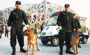 目前,奧運中心區(qū)共有30名民警和60名保安員負(fù)責(zé)巡邏,每天還從巡邏隊調(diào)用兩只警犬。而隊里除了有20多輛電動自行車、7輛普通警用電瓶車以外,還有2輛帶警犬籠的警用電瓶車,這在全市是獨一無二的。記者看到,這種電瓶車的后座上安裝著方方正正的警犬籠,平時民警駕駛電瓶車巡邏,警犬就趴在犬籠里跟著轉(zhuǎn)悠,車停下以后,民警再牽著警犬步行巡邏。而身穿作訓(xùn)服的巡警牽著威風(fēng)凜凜的德國黑貝警犬,也成為奧運中心區(qū)里一道獨特的“風(fēng)景線”,很多游客都爭相與他們合影。