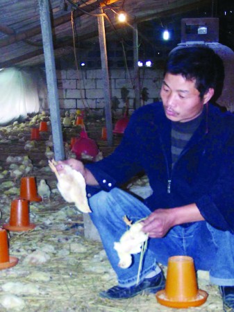 謝文明介紹說,10月27日,他從當(dāng)?shù)匾恍抛u(yù)較好的廠家進(jìn)了7000只優(yōu)質(zhì)雞苗,這批雞苗價(jià)值2.1萬(wàn)元。為了這批雞苗長(zhǎng)成時(shí)能掙個(gè)好價(jià)錢,他還一次性買了3000多元的飼料和用于雞棚保溫的2000多元的煤炭?涩F(xiàn)在7000只雞僅僅剩了不到300只,直接經(jīng)濟(jì)損失近3萬(wàn)元?粗@些死去的雛雞,今年38歲的謝文明心疼得直掉眼淚,妻子更是連飯也吃不下去。