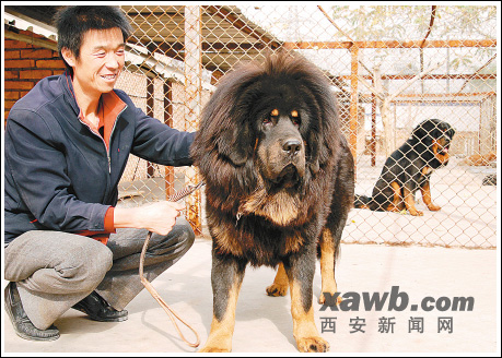劉先生說(shuō),他今年夏天以近400萬(wàn)元的“天價(jià)”從青海玉樹(shù)州一藏民手中購(gòu)得此獒,為之取名“西部一號(hào)”。7月份“西部一號(hào)”來(lái)到西安,并很快適應(yīng)了這里的環(huán)境。劉先生對(duì)它格外照顧,“西部一號(hào)”每次見(jiàn)了劉先生也上躥下跳十分活潑。然而,最近劉先生和飼養(yǎng)員卻發(fā)現(xiàn)“西部一號(hào)”不如原先活潑好動(dòng)了!坝袝r(shí)候感覺(jué)它像人一樣很憂郁,起初我還以為它生病了,后來(lái)通過(guò)查資料我才明白,原來(lái)已經(jīng)兩歲的‘西部一號(hào)’已經(jīng)成年了,到了交配的年齡了,而十月前后恰是藏獒交配的最佳季節(jié),所以我想趕快給愛(ài)犬找個(gè)‘女朋友’!眲⑾壬f(shuō),一般的獒還著實(shí)配不上“西部一號(hào)”的身份,“必須找個(gè)與它條件相當(dāng)?shù)牟亻幔拍芫S持后代高貴的血統(tǒng)。”