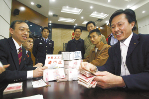 昨天下午2時(shí)許,運(yùn)鈔車押運(yùn)著50多萬元現(xiàn)金和300多萬元支票,開進(jìn)市一中院。法院工作人員將10余名農(nóng)民工代表,召集到法庭內(nèi)逐個(gè)發(fā)放工資。