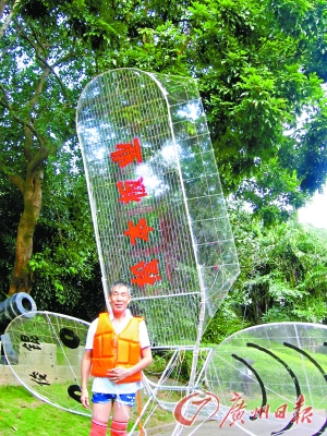 “就是為了實現(xiàn)兒時的一個夢!迸砝蠋熣f,他年輕時就讀重慶一中,當(dāng)時參加了學(xué)校的跳傘隊,曾想做個飛行師什么的,沒想到畢業(yè)后卻成了一名電子工程師,飛天的理想也被束之高閣,但在夢里卻經(jīng)常夢到自己駕著飛機(jī)飛上藍(lán)天。彭老師說,他最大的夢想就是用人力飛越瓊州海峽。