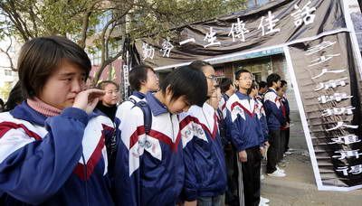 11月10日上午11時58分,榆中縣一悟路整條路面上哭聲一片。刺骨的寒風中,一千余人自發(fā)排成長長的“人道”,送他們心中的好老師——突發(fā)腦溢血暈倒在講臺上的榆中縣第六中學數(shù)學教師景正翠最后一程。