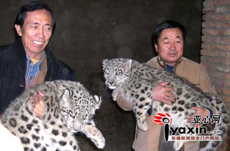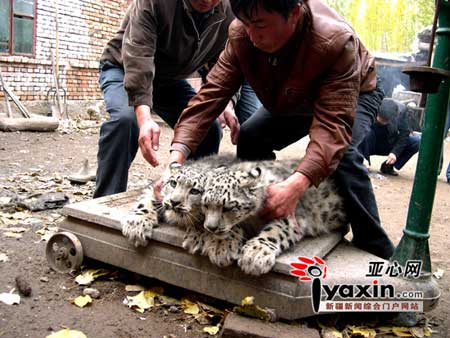 伊寧縣喀拉亞尕奇村牧民張培偉,今年5月10日,在山區(qū)放牧?xí)r撿回一對酷似草原斑貓的兩只小動物,并把這對“草原斑貓”帶回家,當(dāng)成寵物飼養(yǎng),沒想到這兩只“斑貓”越長越像豹子。后經(jīng)專家認定是國家一級保護動物——雪豹。如今這一雄一雌雪豹體重已達15公斤,每天需4-5公斤鮮肉喂養(yǎng),救助者張培偉已難承擔(dān)雪豹的“伙食”供應(yīng)。但是雪豹作為國家保護的珍稀野生動物,既不能出售,又不宜放歸自然,加之在本地也沒有合適的救護地,只能由他繼續(xù)養(yǎng)護著,如今,越養(yǎng)越大的雪豹如一個燙手的山芋,讓張培偉陷入進退兩難的境地。