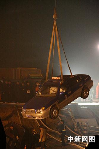 一輛車被吊起。 攝影:江耘