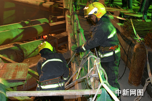 消防官兵對(duì)倒塌區(qū)域水深度進(jìn)行實(shí)地測(cè)量