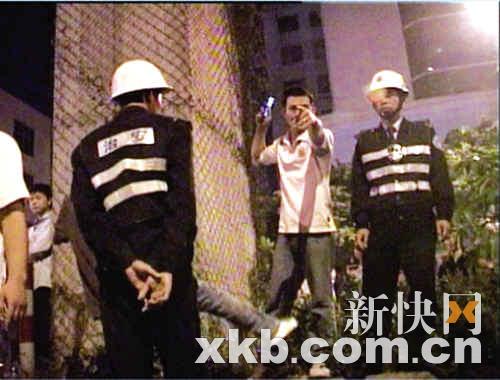 記者凌晨3時(shí)多趕到現(xiàn)場,看到有10多輛的士停靠在事發(fā)路口。有10多名保安在現(xiàn)場維持秩序,交警也在路邊拉起了警戒線。記者看到有兩名臉色通紅、散發(fā)著酒氣味的中年男子正對著在場的10多名的士司機(jī)罵罵咧咧,并不停地指手畫腳,口出狂言。